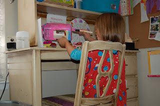 Gwyn found a beetle while on our hike and they were looking through science books trying to find out what kind he was. |
